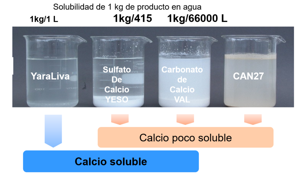 Este tipo de suelos van desde los 6 pH  hasta los 4 pH. Es importante tener bien definido la fuente de Calcio y la cantidad adecuada a ser aplicada, ya que al ser una enmienda, disminuiremos un problema como es el  nivel bajo de PH. Se sabe que en el cultivo de aguacate se tiene una ventana pequeña para impactar calidad y cantidad de frutos (amarre) y es muy importante el Calcio  como nutriente en este momento. Muchos productores tienen la idea que al aplicar enmiendas como Carbonato de Calcio CaCO3  cumplimos los requerimientos totales de Calcio en el cultivo que pueden ser de hasta 1 kg/Ton producida. La solubilidad de una fuente de Calcio es fundamental ya que muchas de las veces son poco o incosteablemente  insolubles. Un ejemplo de esto es la cantidad de agua que se requiere para solubilizar un kilogramo de Carbonato de Calcio que es de 66,000 litros; por otro lado una fuente más soluble como es el Nitrato de Calcio que requiere solo un litro de agua para disolver un kilogramo. Por lo tanto la solubilidad es un factor importante al aportar una fuente de Calcio.