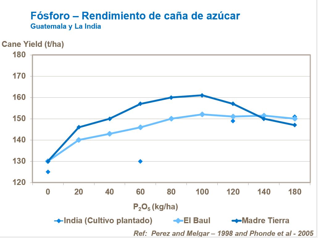 Fósforo es particularmente importante para desarrollo radicular, desarrollo temprano de brotes y macollaje. Suministro faltante de fósforo reduce macollaje, la extensión de los entrenudos y el área radicular. Por eso es importante para apoyar desarrollo de cañas más fuertes, con más macollos y para que se cierre más rápido la masa foliar. Se ha documentado respuesta en rendimiento, hasta en suelos de alta fijación de P.