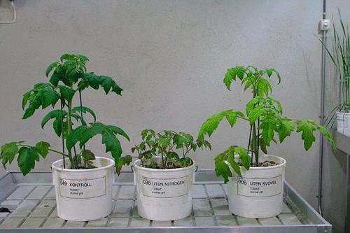 La deficiencia de azufre tiene un aspecto parecido a la deficiencia de nitrógeno, sin embargo, comienza en las hojas más jóvenes porque el azufre no es tan móvil dentro de la planta como el nitrógeno.