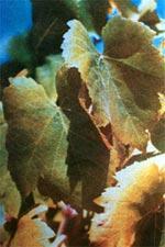 Las hojas adultas se vuelven verde pálido o amarillas. Si la deficiencia persiste, la decoloración se extiende por todo el follaje. Los nuevos pámpanos, los pecíolos y los zarcillos presentan tinte rosa o rojo, independientemente de la variedad.